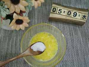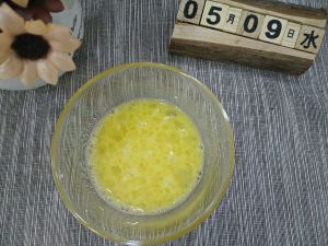 鸡蛋搅拌均匀,尽量不要使劲搅打出沫