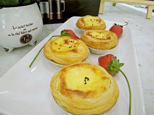 香喷喷的蛋挞出炉啦!快快试试吧!放上你爱的水果和干果味道美美哒