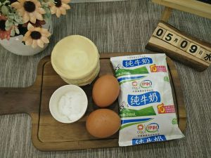 备料,想少做一点可以按比例减量(比如7个蛋挞用1个鸡蛋半包牛奶就OK啦)