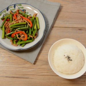 下大红椒丝和肉丝,肉丝快速炒散至熟;
