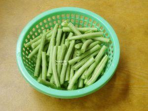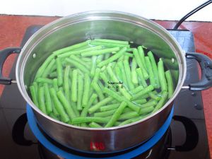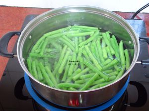 清水煮沸,放入豆角;