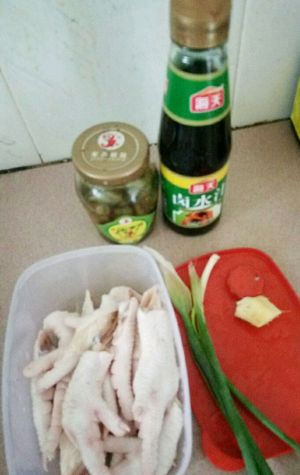 准备好所有材料。鸡爪,鸡爪买的时候叫他剁开,这样腌起来才入味。