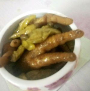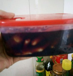 用筷子搅拌,卤水汁一定要倒满。一定要覆盖住鸡爪,不然没有味道的。