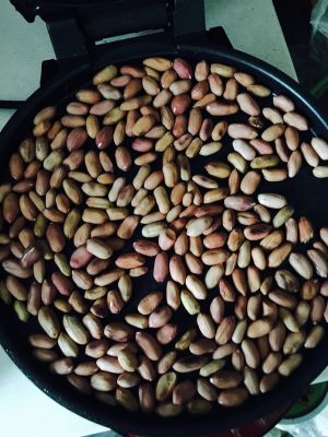 就这样翻炒,等待所有花生米变成紫色,也就到了脱皮时候。停火,等余温再稍烤一会儿。