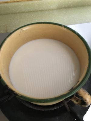 牛奶,椰子汁,白糖混合煮开(白糖的量看个人口味,我有时候不加白糖)。淀粉加水化开备用。