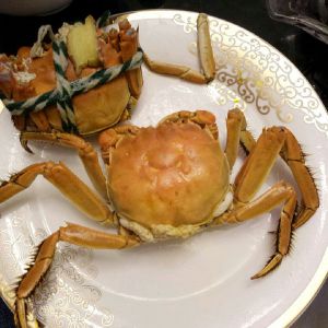 然后把大闸蟹放在蒸锅上,背朝下,(以免黄流出来)把葱姜分别放在大闸蟹的身上,蒸10分钟