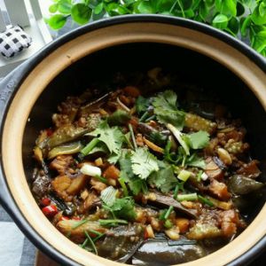 茄子切好放盐水里泡着,下油锅前滤干水份.