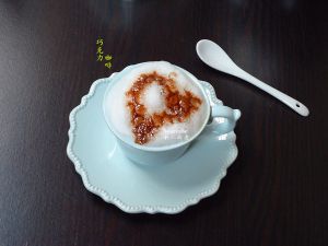在奶泡上淋上巧克力酱即可;PS:冰的巧克力酱。