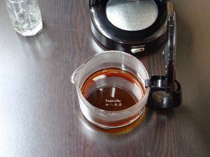 煮好的咖啡倒入杯中;PS:喜欢冰的咖啡,放入冰箱