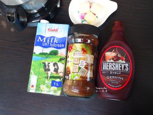 准备食材:纯咖啡、牛奶、巧克力酱;