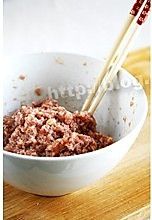 羊肉剁成泥,加葱、姜末、鸡蛋,沿一个方向边搅边加少许清水,加料酒、生抽、胡椒粉、盐沿一个方向搅打上劲儿;