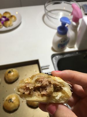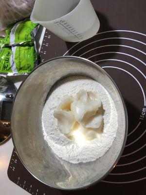水油面:300g面粉+120ml水+80g猪油+20g糖揉成面团