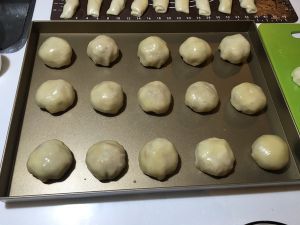 烤箱预热180度,刷一层全蛋液开始烤,中间每十分钟一次