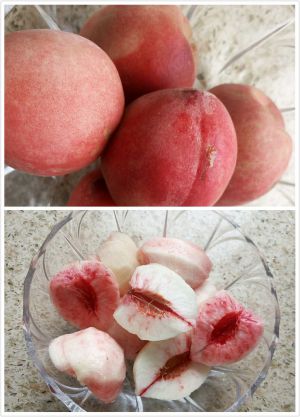 将桃洗净,削皮去核,放入碗里备用。(桃选硬一点的,好削皮)