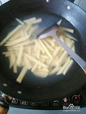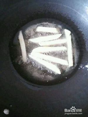 锅里放一点点油!用一次就倒掉了!油最好不能反复使用!会有好多有害物质!小火开始炸就可以了!我用的电磁炉2个小点!!开始炸吧!