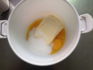 取蛋黄,一半的糖,奶酪融化一起打均匀。
