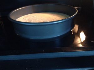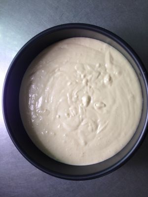 把蛋白跟奶酪糊两者搅拌好倒入8寸固底模。