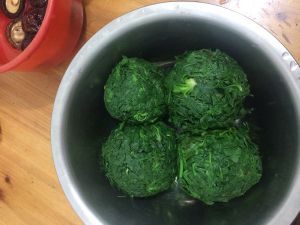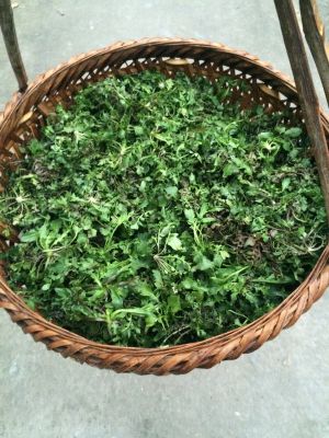 烧一锅水,煮开,放几滴油,一点盐,下荠菜焯水,等荠菜完全变绿,捞出荠菜,放冷水冲凉,之后搓团