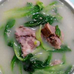我的排骨汤是提前煮好的,去血水后加入各种香料,不放盐,煮至熟。