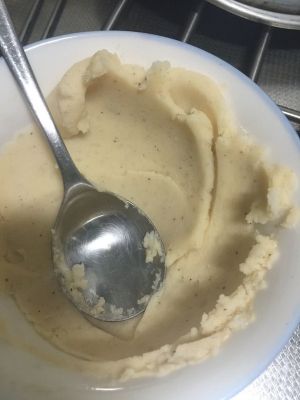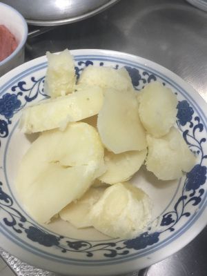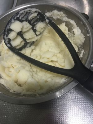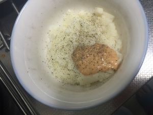 取出适量土豆泥 加入黑胡椒碎 啊 我家还剩了一点儿千岛酱就放进去了- -