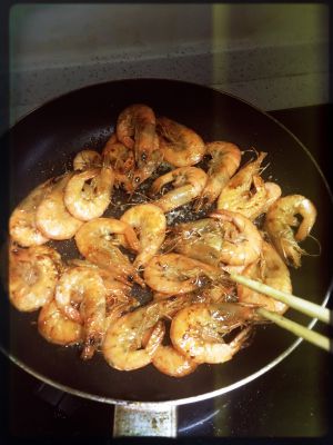 锅里放入有烧热,最好多倒点,这样虾炸一下虾皮更酥脆。
