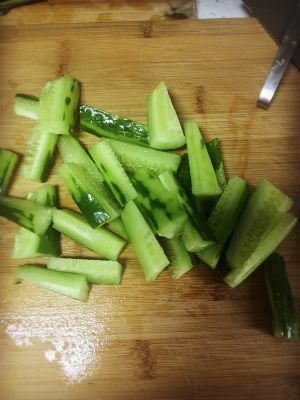 黄瓜也可以不要去皮,这个放冰箱太久我就去皮了。