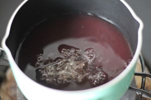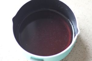 蔓越莓果汁、幼砂糖及柠檬汁混合后放入奶锅中,小火加热至50度左右离火;