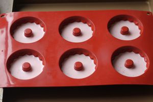 将冷却后的蔓越莓奶冻溶液倒入模具6~7分满,放入冰箱冷冻15~20分钟;