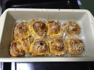 我是开始烤的时间调好时间出去了,烤好出来表面刷黄油,趁热吃,香喷喷的