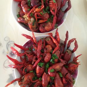 炒锅倒入油把准备好的香料炸香,龙虾倒进去翻炒,变红色后,倒入啤酒和适量开水(没过龙虾),大火煮沸后,小火慢炖,直至收汁。加水多些为了加长煮沸时间杀菌,呵呵~