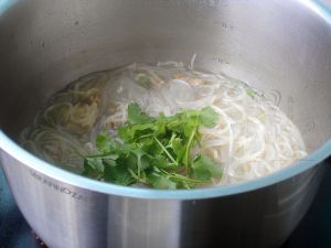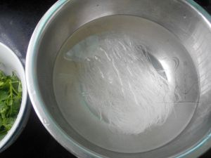 粉丝泡软,香菜切段