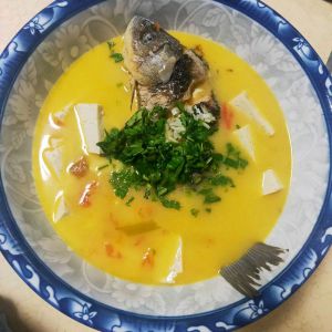 25分钟后,汤汁烧至奶白后,关火装盘,撒适量香菜即可