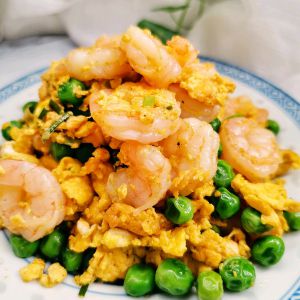 锅中入油,7分热,倒入鸡蛋液,稍微凝固,入豌豆米,翻炒几下,锅边淋入一勺生抽提鲜提味,翻炒均匀,起锅