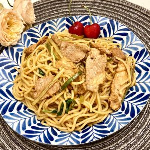 把面条捞起倒入炒锅中,加入盐,糖,生抽,老抽继续翻炒,最后放香菜!这里要注意,糖的用量是平时炒菜的两倍,这样的面条更鲜美哦!