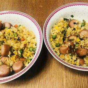 隔夜饭是灵魂,拼命炒,一把葱下去香气扑鼻,又香又满足。