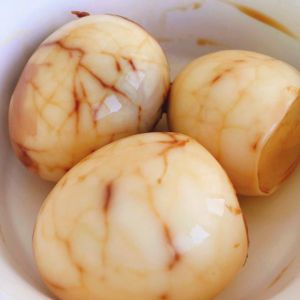 调料盒、生抽、老抽、盐、冰糖,一起倒入,加水至淹没过鸡蛋,沸腾后,小火炖煮20分钟。