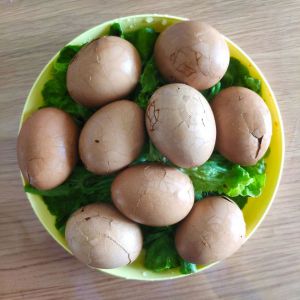 煮好后先不要急着把蛋拿出来,让它们在汤水里浸泡一会,时间越长越入味。