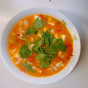 加一勺鸡精就可以出锅了,放一把香菜。软嫩可口的番茄豆腐巴沙鱼就大功告成了。鱼片很嫩的哦。