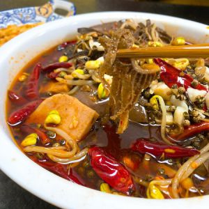 起锅烧油,倒入葱姜蒜麻椒干辣椒,再加一勺郫县豆瓣,小火翻炒出香味红油倒水。 水开后加入火锅底料.我用的桥头味道很好。