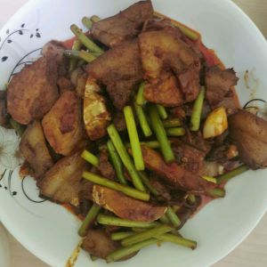 闷十几分钟样子 因为前期肉已经煮的差不多熟了 蒜苔最后加进去翻炒至熟 前期水要加足 后期加水会影响味道