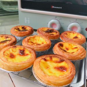 摆好蛋挞皮,倒入蛋挞液,倒到九分满。