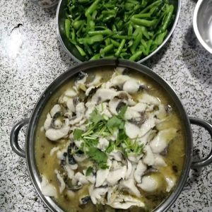 撒上香菜 可以吃啦 我朋友吃不了很辣 所以没有放很多辣椒 喜欢香辣的 后面放点干辣椒花椒 泼点热油就可以了 OJBK 一锅才花40左右 在外边58一份 鱼都没有这一半多