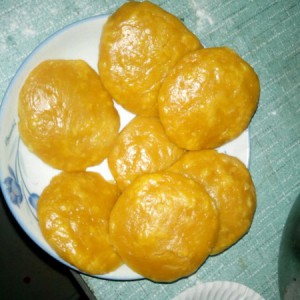 压成圆饼,放进蒸笼里,下面加冷水,大概二十分钟。