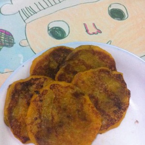 南瓜团没加水,特别软,做饼时就要用你万能的双手了,放碗泠水,手上沾泠水,团饼时就不会粘手。