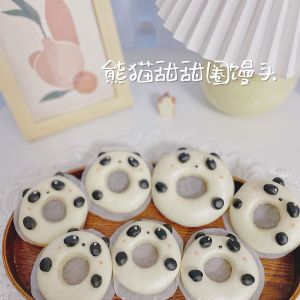 4. 把预留的面团平均分成2份,分别加入竹炭粉和红色素调色,做眼睛、脚、鼻子和腮红,如果面团太干可以适量加一点牛奶