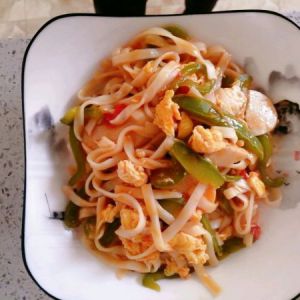 第四步,然后把煮好的面把水控干,放入锅中,翻炒几下,就可以出锅了。