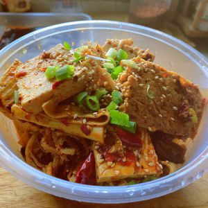 炒好的香锅盛出,上面撒少许葱花,开吃