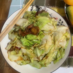 什么鬼,我想换成我萌萌的宠物表情包怎么图片不能选择。算了重要的是怎么做。这是第二次,改良了。买了干辣椒,又综合了几个视频。首先小油五花肉下锅,煸出油,煸到有点干香。五花肉的油比较精华。炒出来会比较香。然后蒜拍扁下锅,干辣椒炸锅,爆出香味。这时候可以调一调料汁,酱油,蚝油少许,陈醋,调开。爆香加热油正好包菜下锅,大火炒,一定要大火否则容易软,炒出来的就不脆了,可以加点力按压一下。炒到变色,加入少许盐,后续有酱油所以盐不要太多,炒两下,就把料汁倒入,疯狂翻炒均匀,然后边尝边出锅吧就。约莫着来就行,炒久了容易软掉,不够久容易有点生……