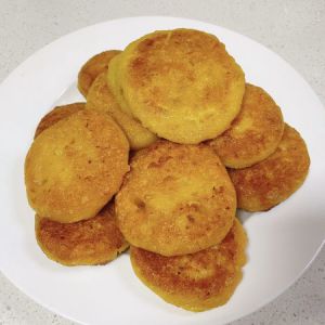 揉成光滑面团—揪一个剂子搓圆捏扁放一边—锅中放入有适量(手快油倒多了一点)—将小圆饼放入锅中煎至两面金黄起锅。