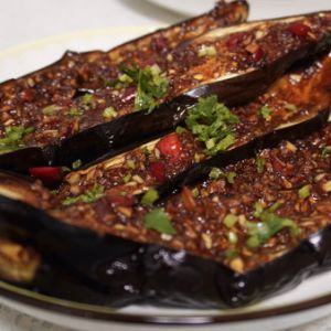 4⃣️将烤好的茄子转移到盘子里,那一道菜就成了。